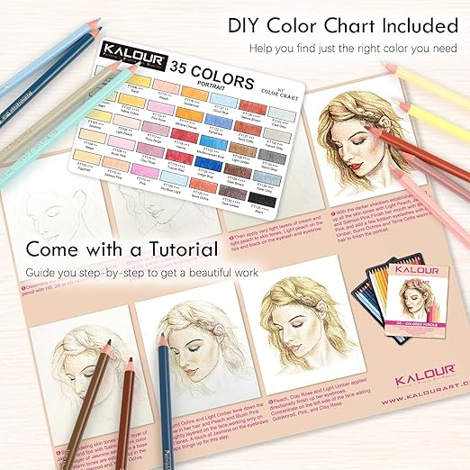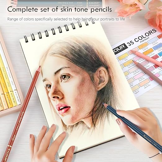 36 Skin Tone Color Pencils Set: Contains 35 vibrant color pencils, 1 colorless blender pencil, 1 tutorial, and 1 DIY color chart.